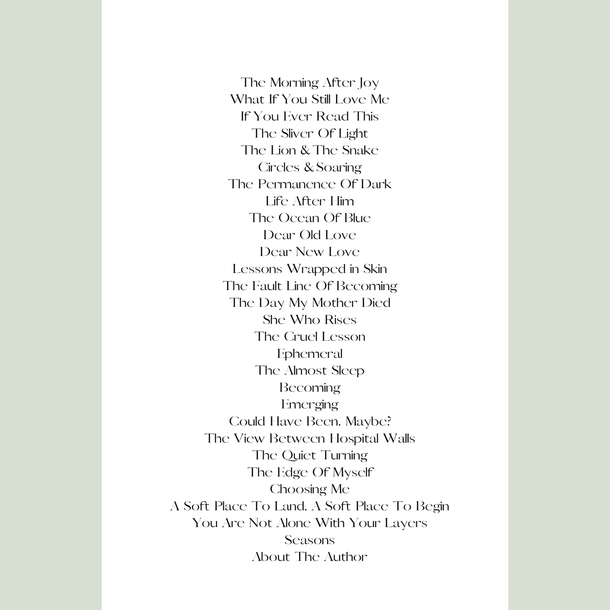 This collection does not offer easy answers. Instead, it holds space for reflection, endurance, and the slow work of healing. It is for readers who have known grief, who live with anxiety, or who have searched for language during difficult seasons.